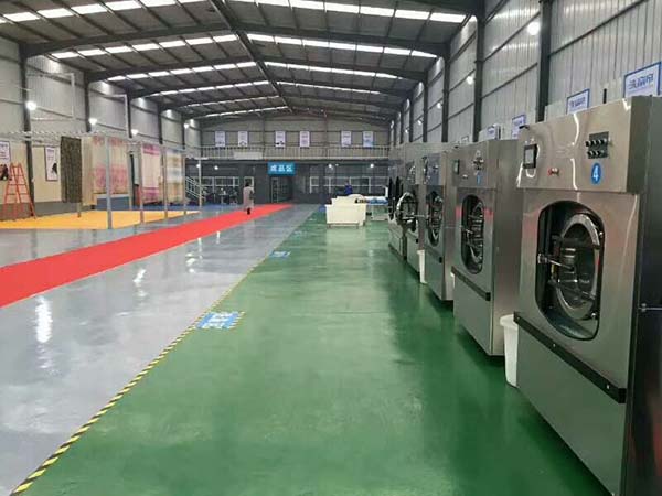 6、脫水階段。高速脫水與出機。大型工業(yè)洗衣機廠生產(chǎn)的水洗機脫水筒的高速運轉產(chǎn)生離心力使含在織物中水分被甩出,便于織物晾曬,加速織物干燥。