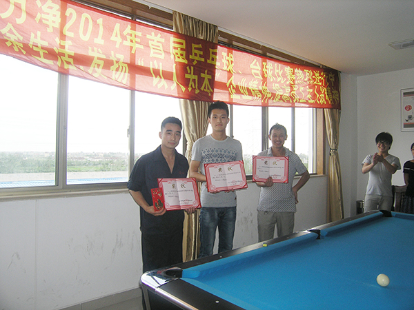 上海力凈洗滌機(jī)械制造有限公司為了豐富員工的業(yè)余文化生活,提高員工身體素質(zhì),發(fā)展大家的興趣和愛好,本著“以人為本”的企業(yè)精神,發(fā)揚員工主人翁的精神,也為進(jìn)一步推進(jìn)公司企業(yè)文化落地的堅實腳步,樹立良好的企業(yè)形象,營造企業(yè)大家庭氛圍,體現(xiàn)公司關(guān)愛員工的企業(yè)核心價值觀,加強員工之間的交流與溝通,為工作中的溝通打下良好基礎(chǔ),在這個驕陽似火的7月舉辦了一場轟轟烈烈,熱熱鬧鬧的2014年首屆乒乓球、臺球賽,以增加各部門員工之間的交流和友誼,公司采取個人自愿報名的形式,各位員工踴躍報名,共有48人參加了此次活動,桌球28人,乒乓球20人,比賽地點:公司員工娛樂室,大家心情愉悅,熱情高漲。